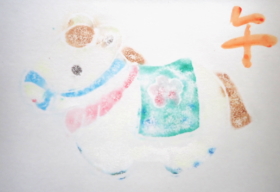 | ところがそのやっている人が少ないことが災いして平成17年にメーカー(東京尚文堂)が生産中止となりました。あちこち探して広島の仲間よりフェルト版画の在庫のある販売店の情報を聞いてまとめて購入出来ました。同じように困っている県外のフェルト版画ファンの方よりお便りを頂き数枚ですが送りました。それがご縁で毎年年賀状をやりとりするようになりました。併せてまわりにフェルト版画仲間を増やしたいと思い講習会を続けてきましたが、新たにメーカーより生産販売されるようになりました。 |