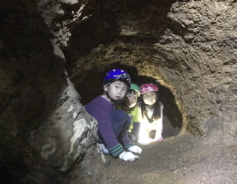 | 4,洞窟コース:ライトをつけて前傾壁の中に入り進みます。柔軟な体の動きを練習します。 |